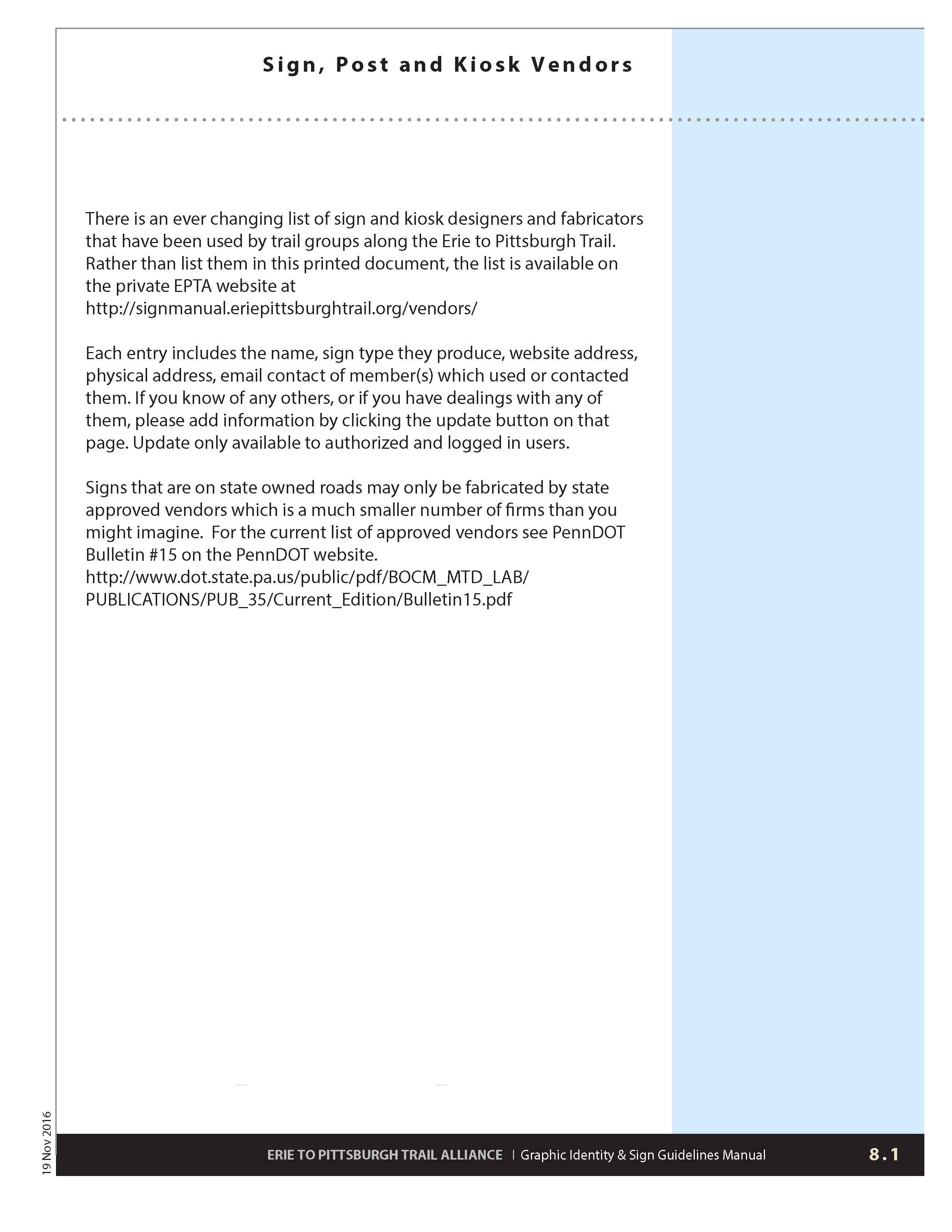 8.1 Sign And Kiosk Vendors [ prev ][ next ][ previous 7.10 ][ next 8.2 Cost Estimates ]Click image to see larger size.